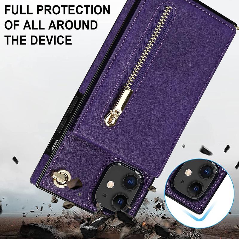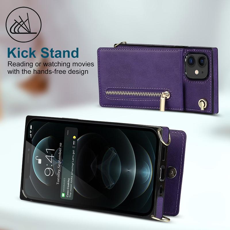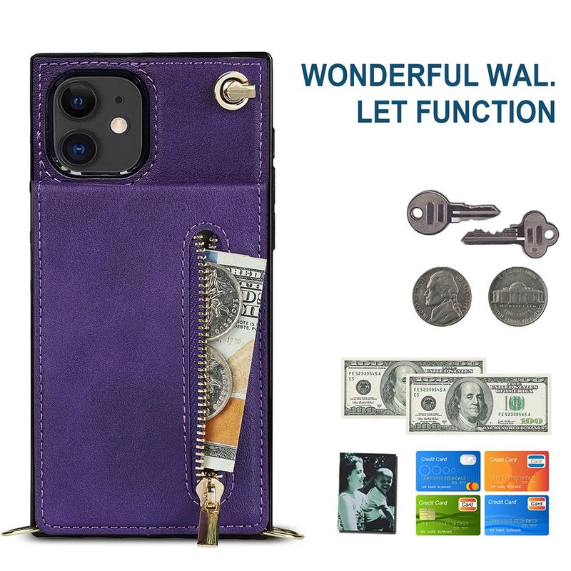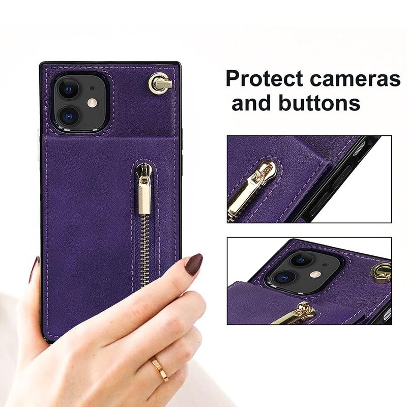 Coque hybride avec portefeuille et dragonne pour iPhone 11