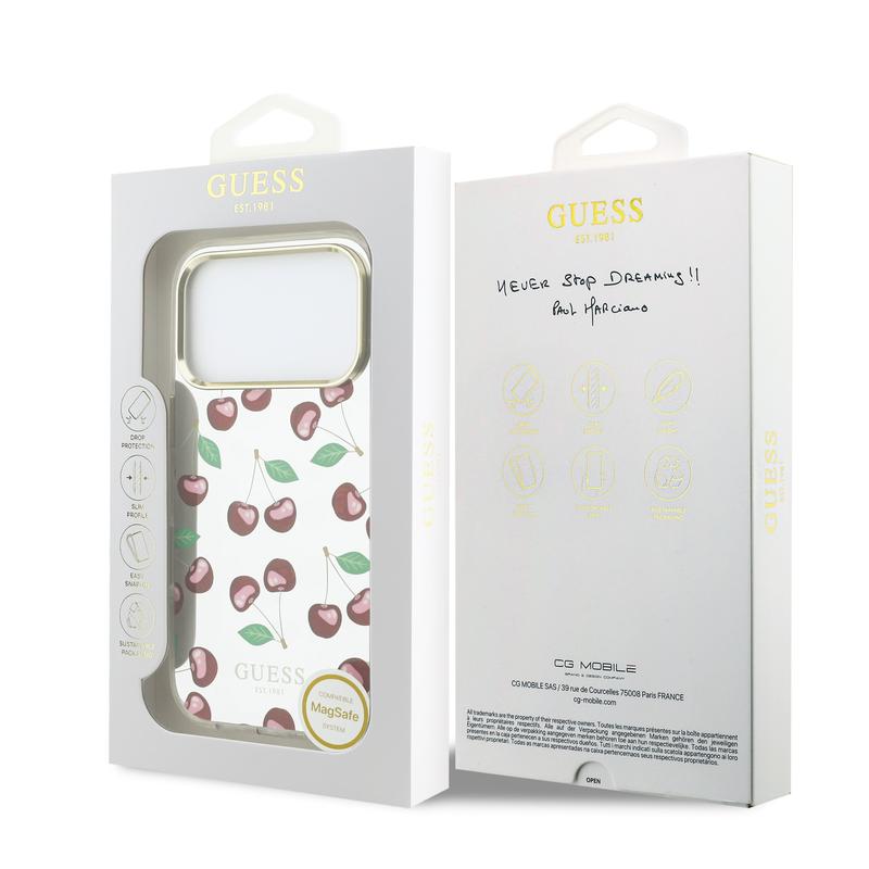 • Coque hybride Guess Mirror Glitter Cherry MagSafe pour iPhone 17 Pro Max - Coque arrière protectrice