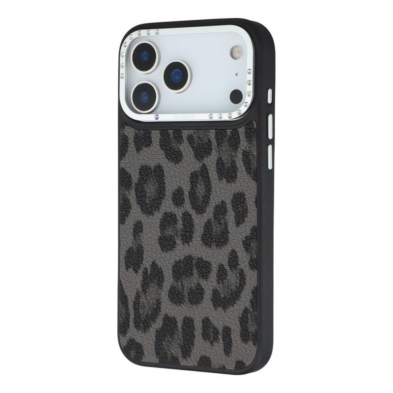 • Jaucase Coque hybride magnétique imprimé léopard pour iPhone 17 Pro - PU + TPU + PC avec lentille en strass
