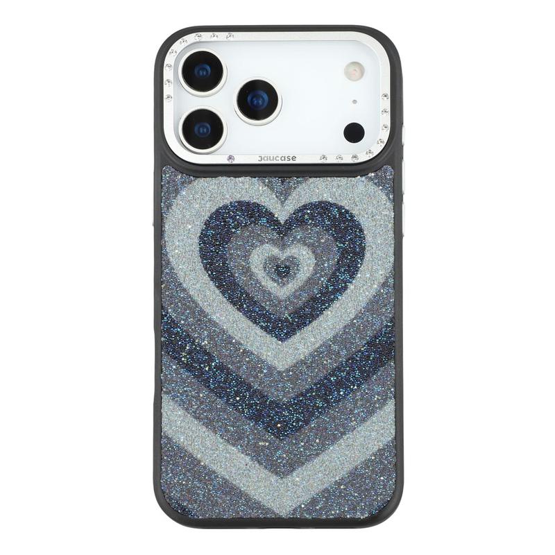• Jaucase Coque hybride magnétique avec motif de coeur pour iPhone 17 Pro Max - Polyuréthane + TPU + PC avec cadre de lentille en strass