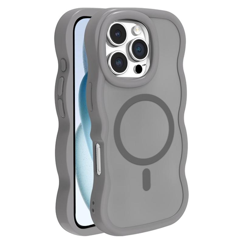 Coque hybride magnétique iPhone 16 Pro bord d\'onde - Grise