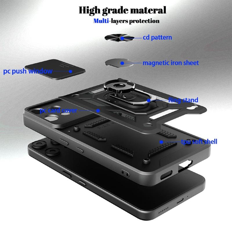 Fabriquée avec du plastique, du TPU et des matériaux métalliques de qualité supérieure, cette coque pour Nothing Phone (3a) Lite est conçue pour résister à l'épreuve du temps et de la protection. Doté de multiples fonctions, il protège parfaitement votre Nothing Phone (3a) Lite et le rend également confortable à utiliser et à regarder grâce à l'anneau rotatif situé à l'arrière.