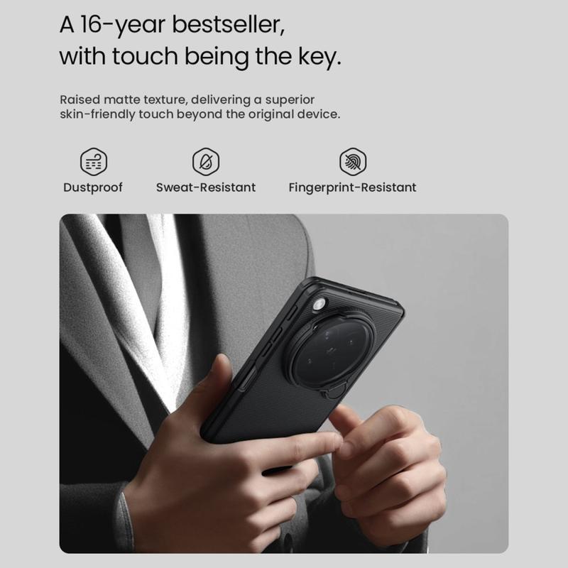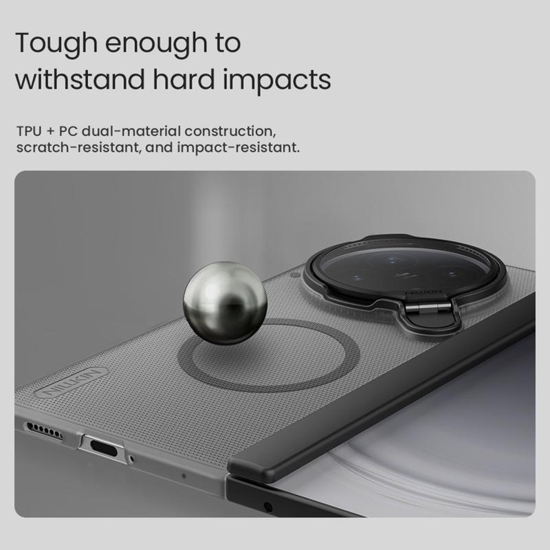 Protégez votre Oppo Find N6 avec style grâce à l'étui Nillkin Super Frosted Shield Prop Case. Conçue pour durer, cette housse de téléphone fine et robuste protège contre l'usure quotidienne tout en ajoutant des fonctionnalités utiles. Avec un couvercle pratique pour l'objectif de l'appareil photo et une béquille intégrée, cet étui allie une protection robuste à une commodité moderne.