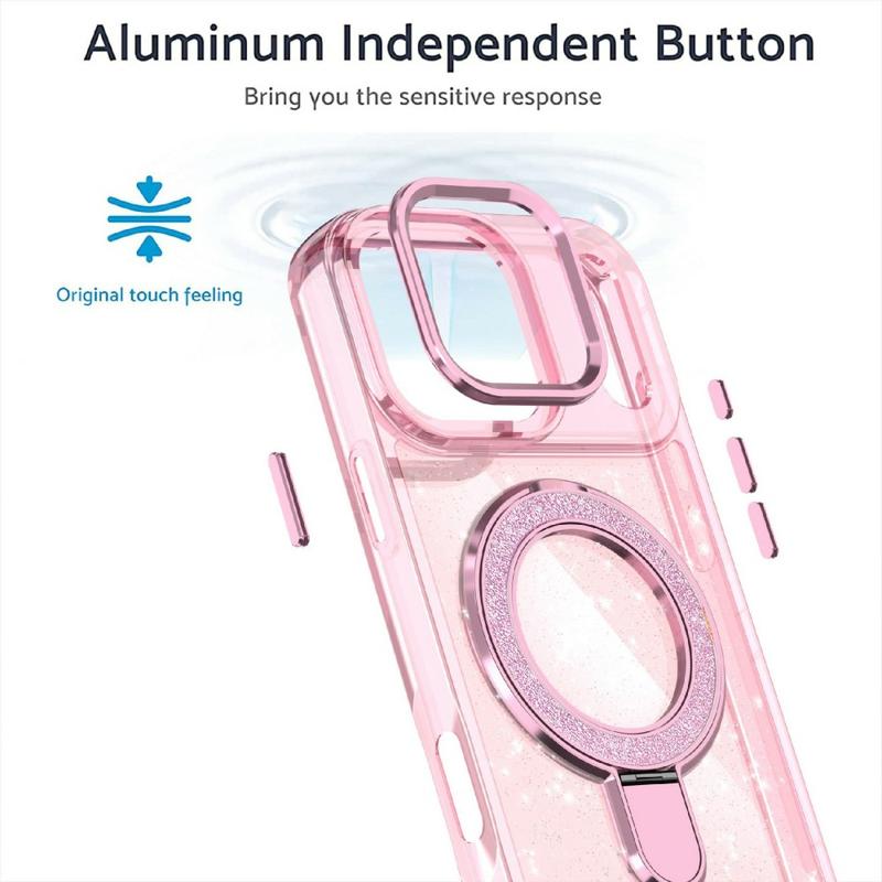 Alliez style et protection avec l'étui pailleté pour iPhone 17 Pro, qui allie élégance et durabilité au quotidien. Fabriqué à partir de matériaux de haute qualité et doté d'une béquille métallique intégrée, cet étui permet à votre téléphone de rester sécurisé, fonctionnel et à la mode tout au long de la journée.