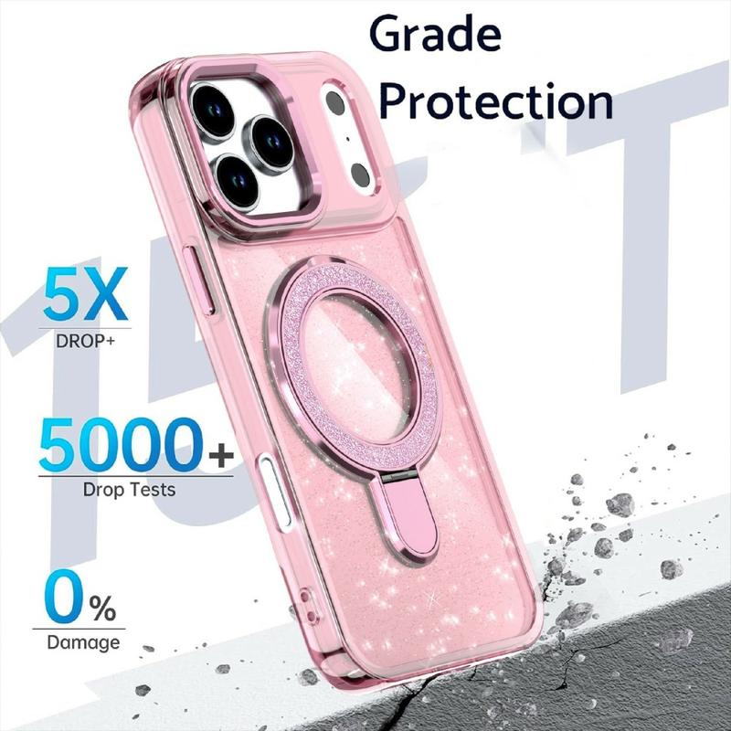 • Coque pailletée avec Kickstand pour iPhone 17 Pro - Coque Kickstand hybride TPU + PC compatible MagSafe