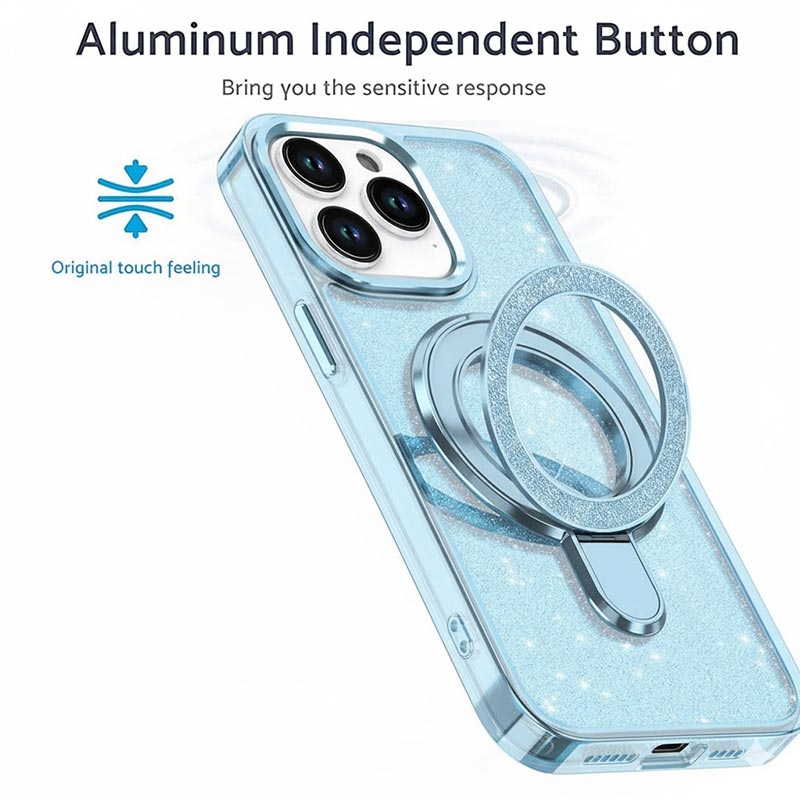 Alliez style et protection avec l'étui pailleté pour iPhone 16 Pro, qui allie élégance et durabilité au quotidien. Fabriqué à partir de matériaux de haute qualité et doté d'une béquille métallique intégrée, cet étui permet à votre téléphone de rester sécurisé, fonctionnel et à la mode tout au long de la journée.