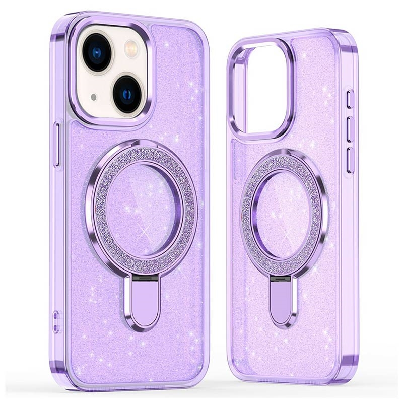 Coque hybride pailletée iPhone 15 avec Kickstand - Compatible MagSafe - Violete