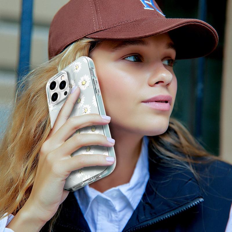 Le cadre avant en PC dur comprend une protection d'écran intégrée pour plus de sécurité, tandis que la conception en deux parties garantit une installation facile et pratique, avec prise en charge de la recharge sans fil. La fabrication du motif IMD garantit que l'image élégante de votre étui ne s'effacera jamais, pour que vous restiez toujours à la mode.