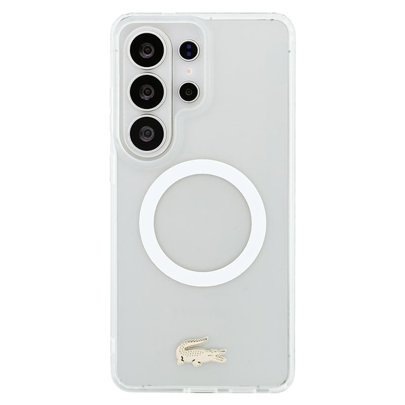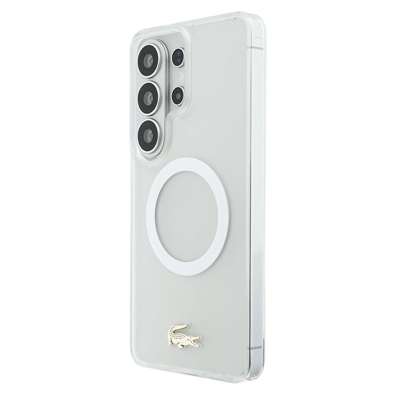 Coque Hybride Lacoste Frosted Finish Gold Logo pour Samsung Galaxy S26 Ultra - Compatible MagSafe, Coque arrière premium avec logo doré et cadre photo