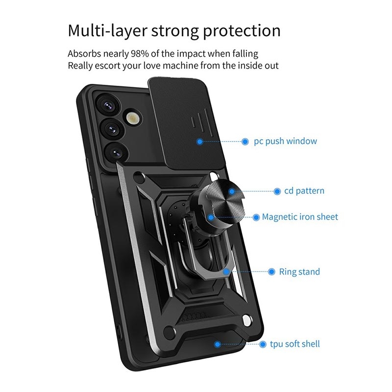 - Coque hybride à anneau rotatif avec protection d'appareil photo pour Samsung Galaxy A57