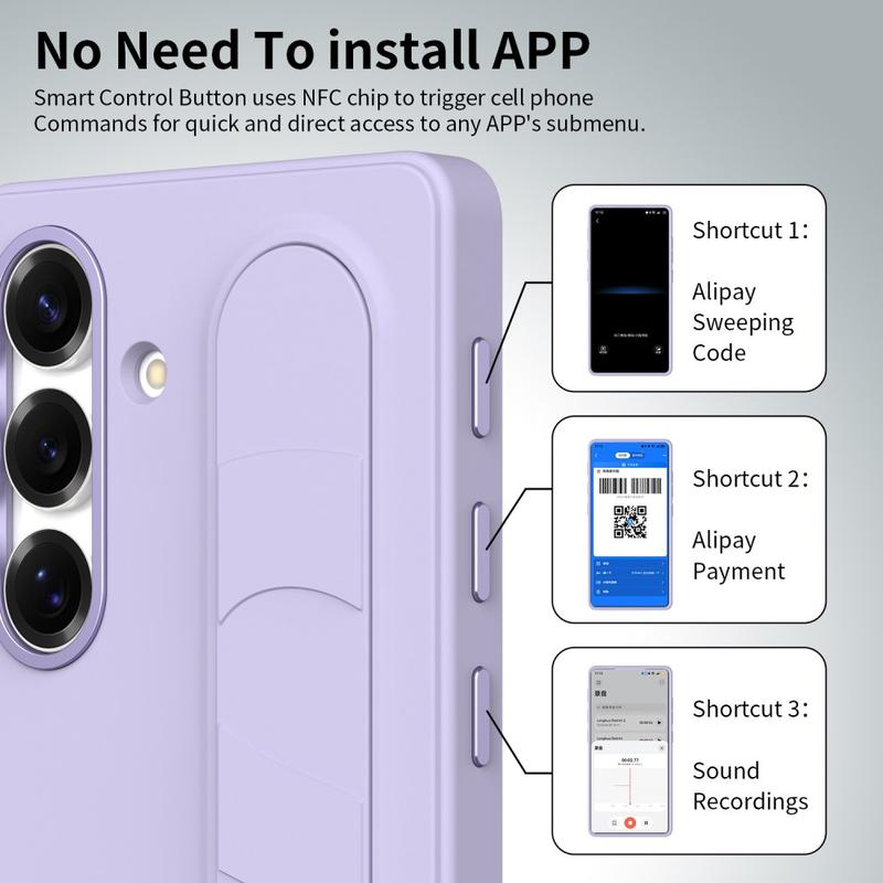 Équipé de trois boutons NFC intelligents, cet étui hybride intelligent vous permet d'accéder rapidement à des applications telles que Appareil photo, Lampe de poche ou Capture d'écran d'une simple pression. Pas de charge, pas d'applications supplémentaires - juste une fonctionnalité simple et instantanée.