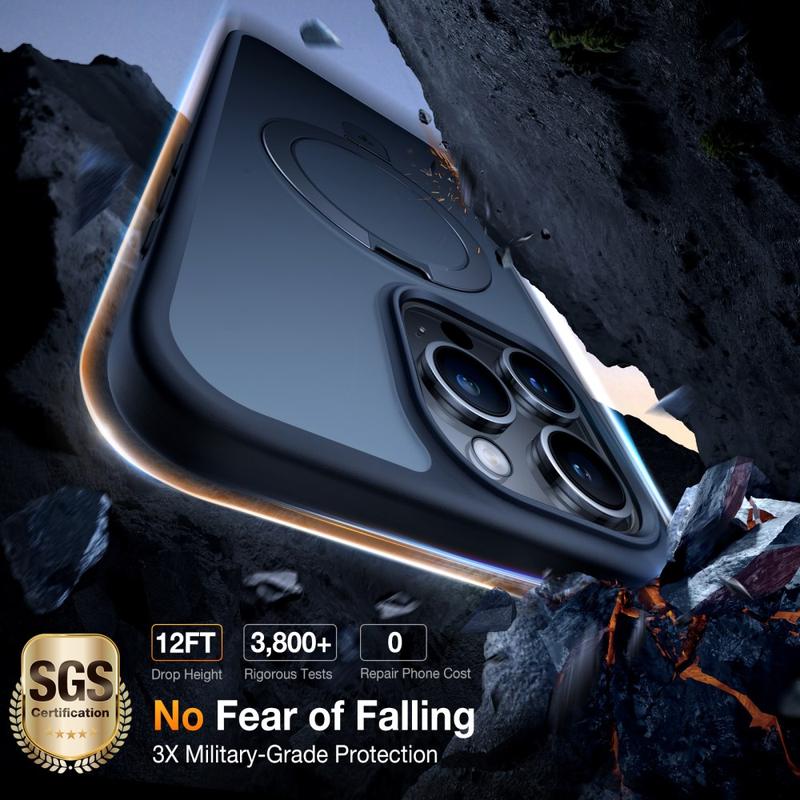 Glissez cette housse élégante sur votre iPhone 15 Pro et bénéficiez de trois éléments essentiels en un : un alignement MagSafe solide comme le roc, un support métallique pliable pour un visionnage mains libres et une protection contre les chutes certifiée SGS de qualité militaire, le tout sans sacrifier la minceur de votre poche.