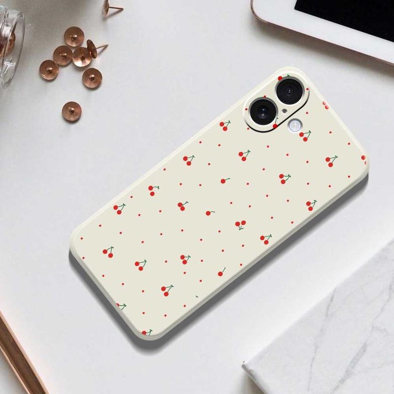 Coque en TPU à motif cerise pour iPhone 17 - Texture soft-touch en silicone liquide avec protection surélevée de l'appareil photo