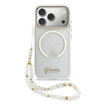 Coque MagSafe avec dragonne Guess IML Glitter Script pour iPhone 17 Pro - Coque arrière pailletée avec dragonne, protection PC+TPU, compatible MagSafe