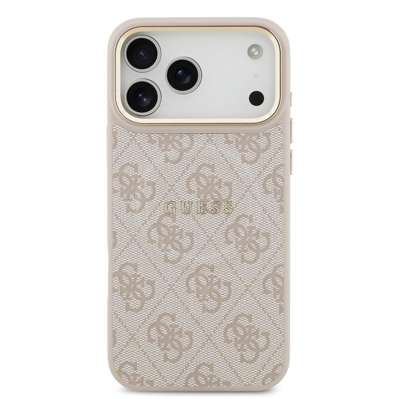 Coque MagSafe Guess 4G Gold Frame pour iPhone 17 Pro Max - Coque arrière protectrice fine, polyuréthane, compatible avec la recharge sans fil