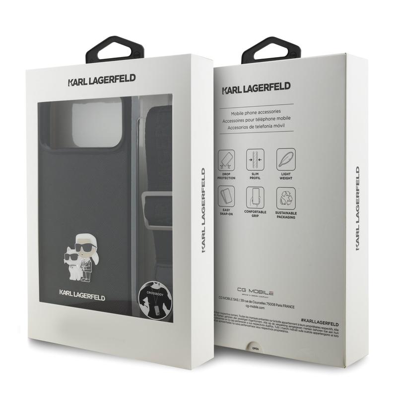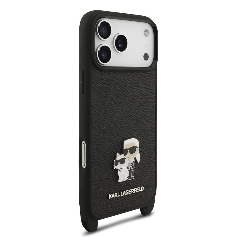 Coque iPhone 17 Pro Max Karl Lagerfeld Saffiano Crossbody Metal Karl & Choupette - Noire