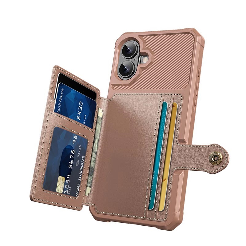 - L'étui portefeuille pour iPhone 17 a une fermeture à bouton-pression sécurisée, un design de portefeuille et plusieurs fentes pour cartes avec une poche pour l'argent