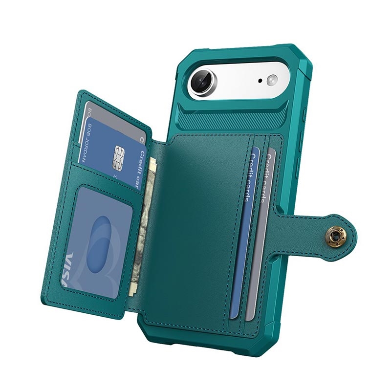 - L'étui portefeuille pour iPhone Air a une fermeture à bouton-pression sécurisée, un design de portefeuille et plusieurs fentes pour cartes avec une poche pour l'argent