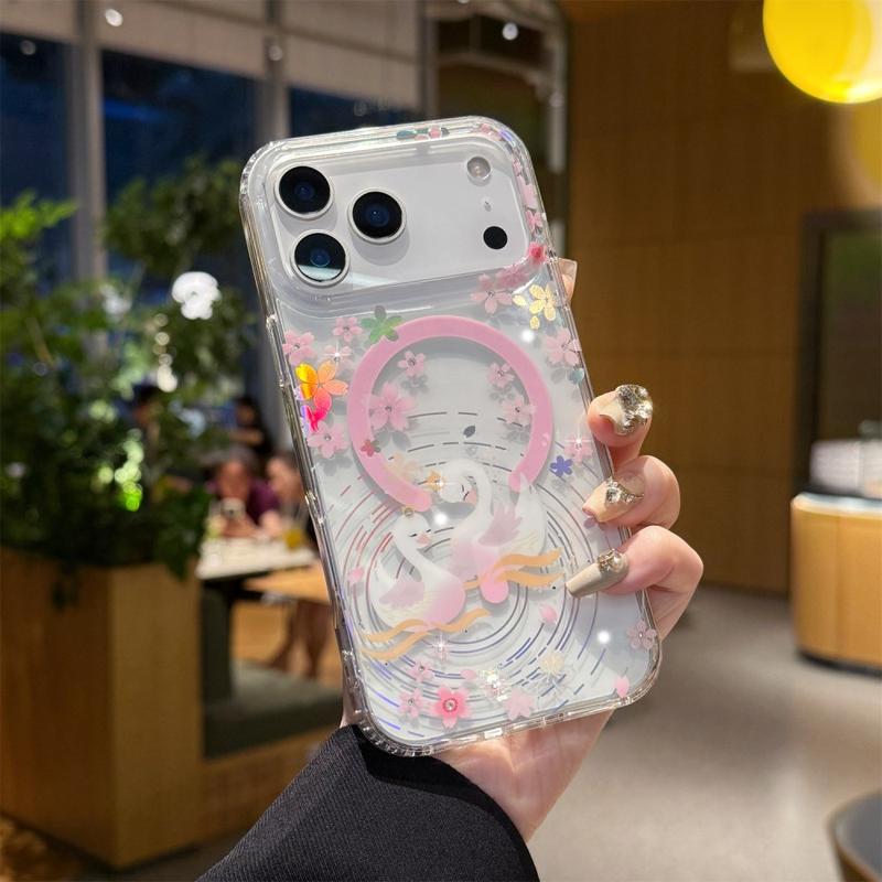 Coque magnétique iPhone 17 Pro avec strass intégrés - Cygnes