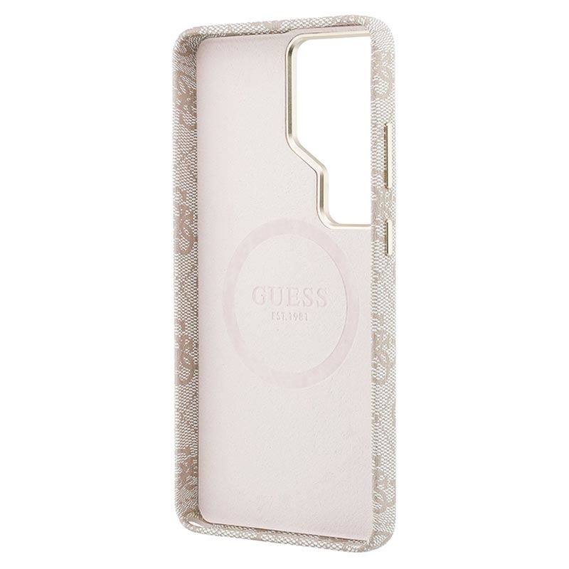 Coque magnétique Samsung Galaxy S26 Ultra Guess 4G Script Metal Logo - Rose