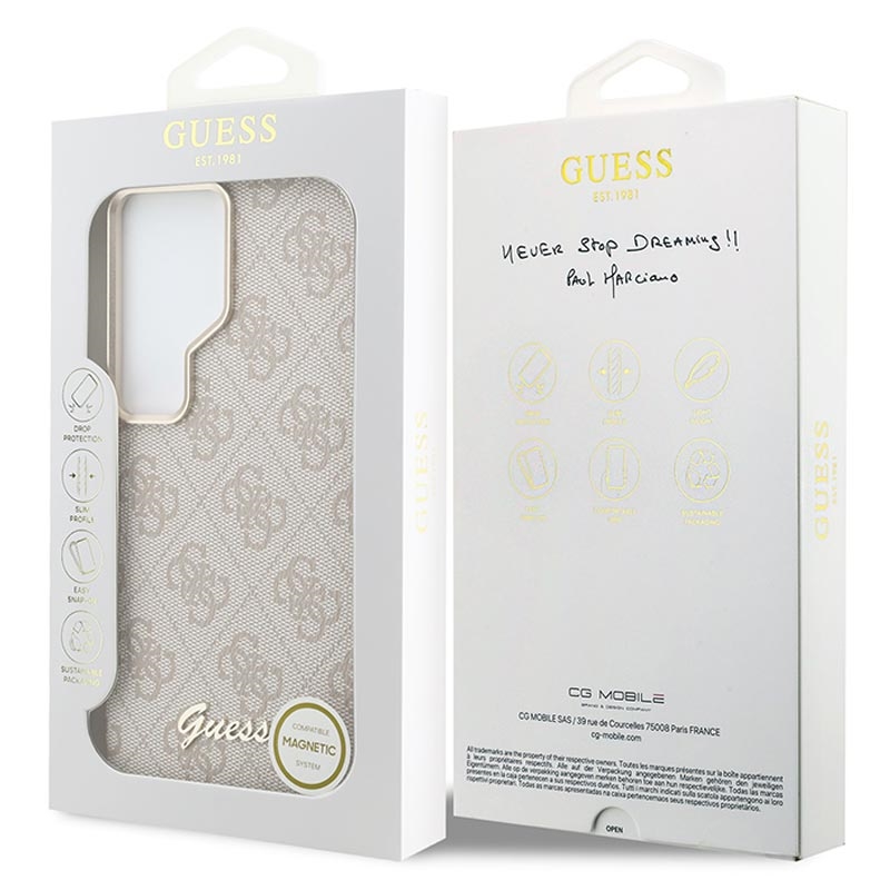 • Coque magnétique Guess 4G Script Metal Logo pour Samsung Galaxy S26 Ultra - Coque arrière pour PC avec finition en polyuréthane