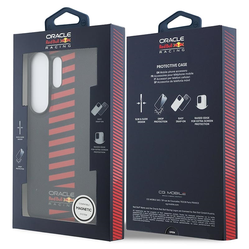 Découvrez un design inspiré du sport automobile avec la coque magnétique Oracle Red Bull Racing Meshed Powerbar pour Samsung Galaxy S26 Ultra. Alliant l'esthétique de la course automobile à une protection pratique au quotidien, cette coque arrière haut de gamme présente un design Meshed Powerbar distinctif et le logo authentique Oracle Red Bull Racing. Composée d'un noyau en PC durable, d'un cadre en TPU souple et d'une surface en polyuréthane élégante, elle offre une prise en main sûre, un profil fin et une protection fiable pour un usage quotidien.