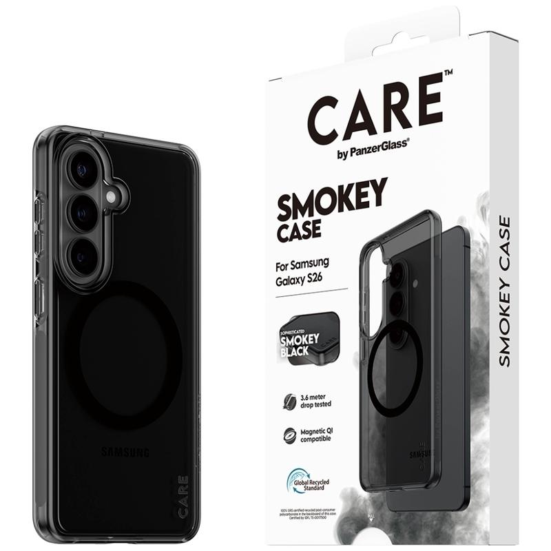 Coque magnétique Care by PanzerGlass Urban Explorer Smokey pour Samsung Galaxy S26 - 100 % plastique recyclé, testé pour des chutes de 3,6 m, garantie anti-jaunissement, protection améliorée de l'appareil photo