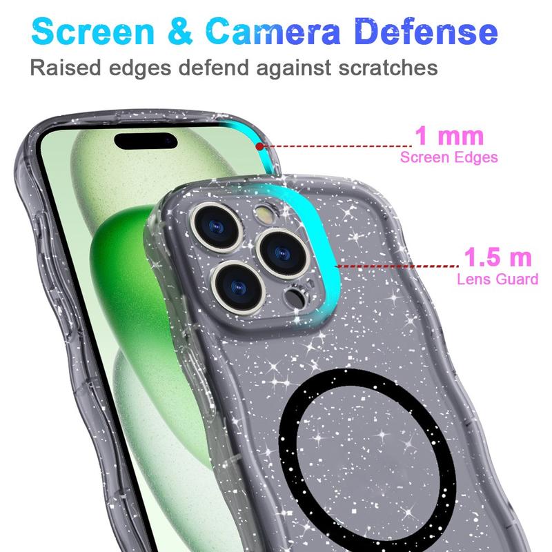 Coque MagSafe en TPU Wave-Edge Laser Glitter pour iPhone 15 Pro Max