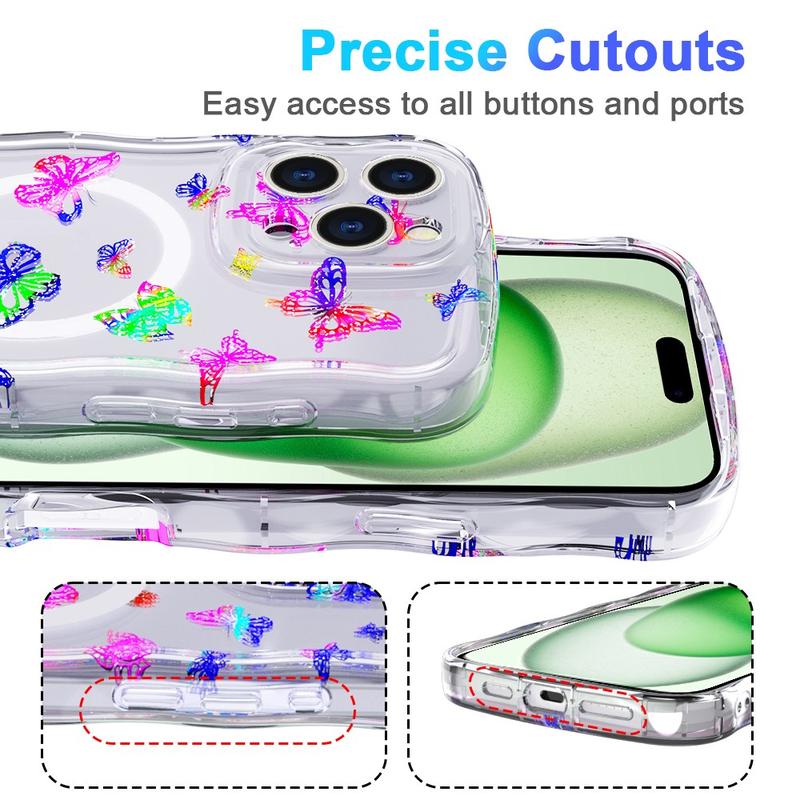 Coque MagSafe iPhone 15 Pro Wave-Edge Laser Glitter - Papillone