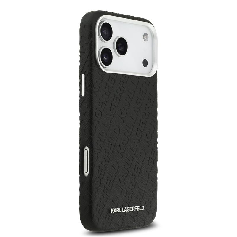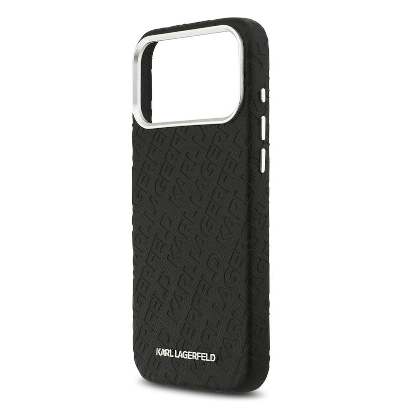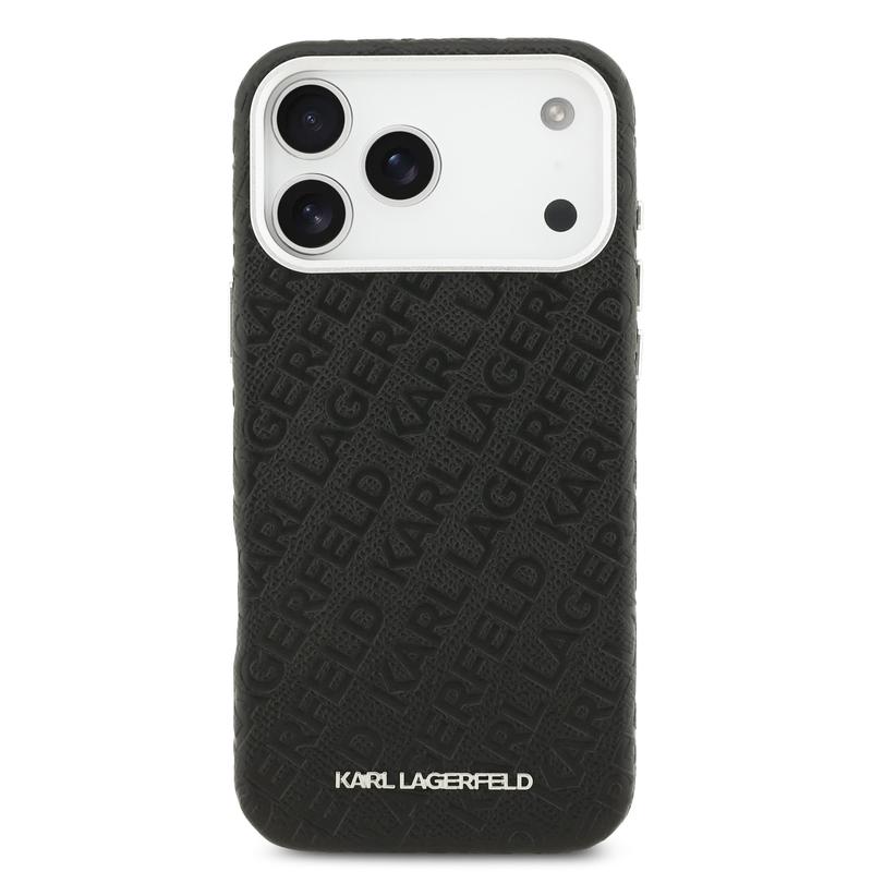 Coque MagSafe Karl Lagerfeld Grained Repeated Logo pour iPhone 17 Pro Max - Couvercle arrière en polyuréthane de qualité supérieure