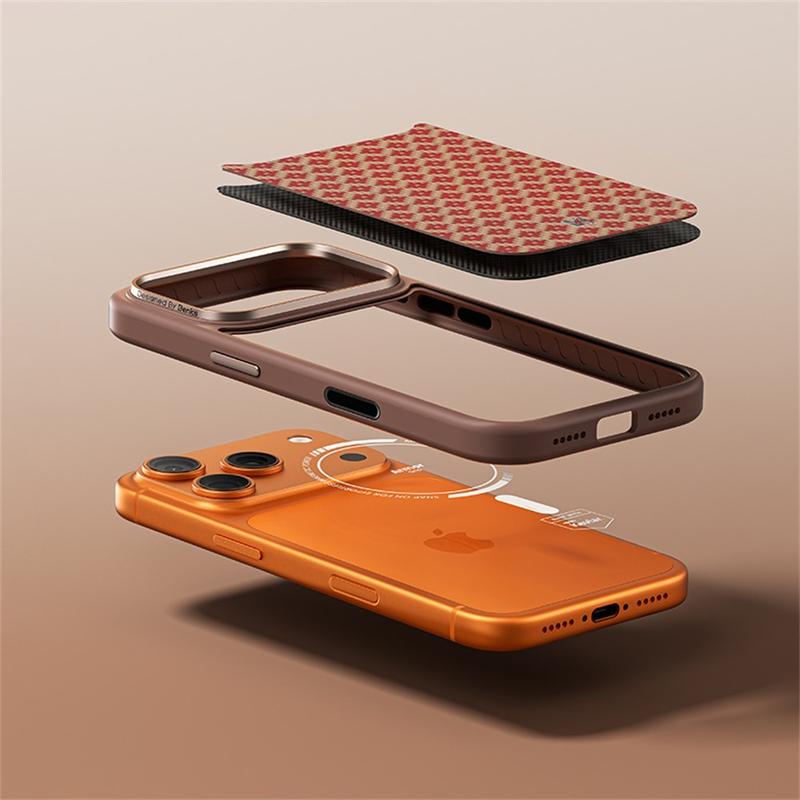 La plaque arrière géométrique artistique en fibre aramide tissée offre une sensation tactile unique et un aspect sophistiqué et high-tech. La surface texturée améliore la prise en main et souligne la nature haut de gamme du matériau, ce qui permet à l'étui de se démarquer tout en conservant un design minimaliste.