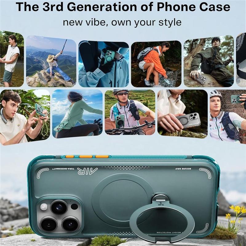 Torras Ostand Q3 Air MagSafe Case pour iPhone 15 Pro - Béquille 360, protection AirMAX Airbag, prise magnétique forte
