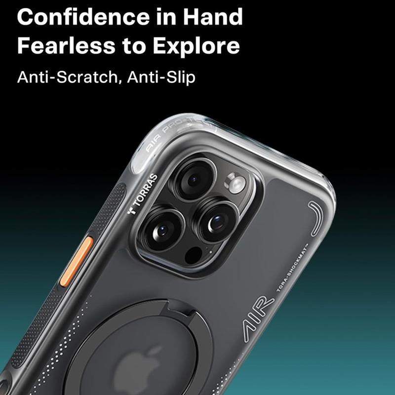 • Torras Ostand Q3 Air MagSafe Case pour iPhone 15 Pro Max - Béquille 360, protection AirMAX Airbag, prise magnétique forte