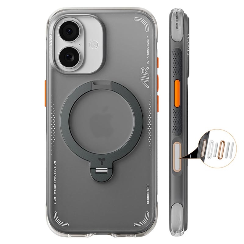 • Coque MagSafe Torras Ostand Q3 Air pour iPhone 17 - Béquille 360, protection AirMAX Airbag, prise magnétique forte