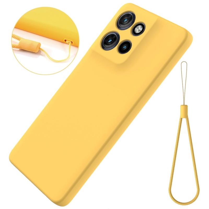 Coque Motorola Moto G Power (2025) en silicone liquide avec dragonne - Jaune