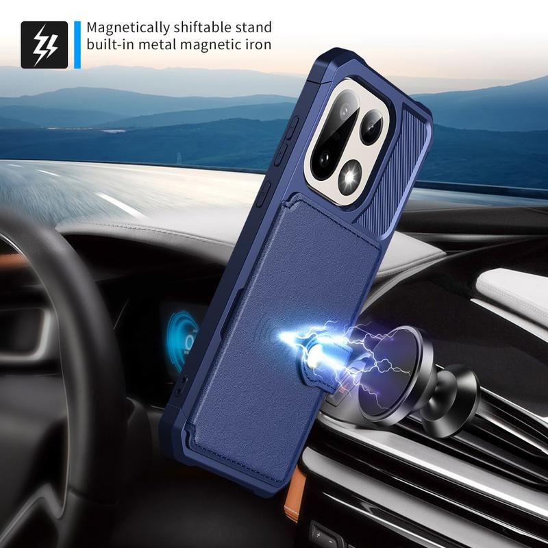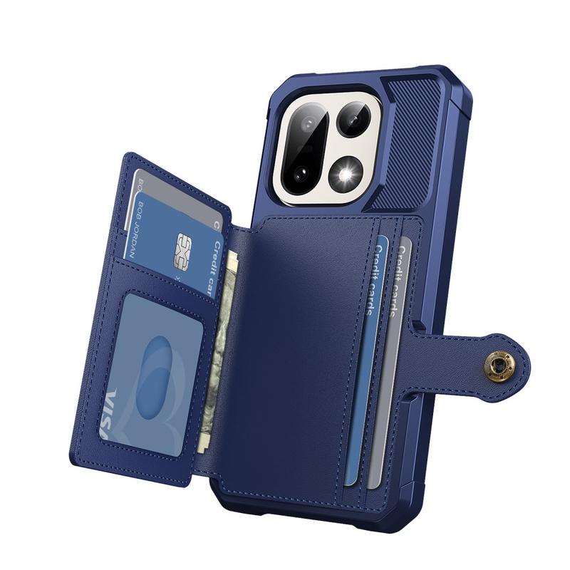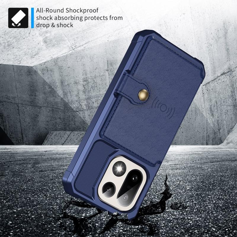 - L'étui portefeuille pour OnePlus 15 a une fermeture à bouton-pression sécurisée, un design de portefeuille et plusieurs fentes pour cartes avec une poche pour l'argent