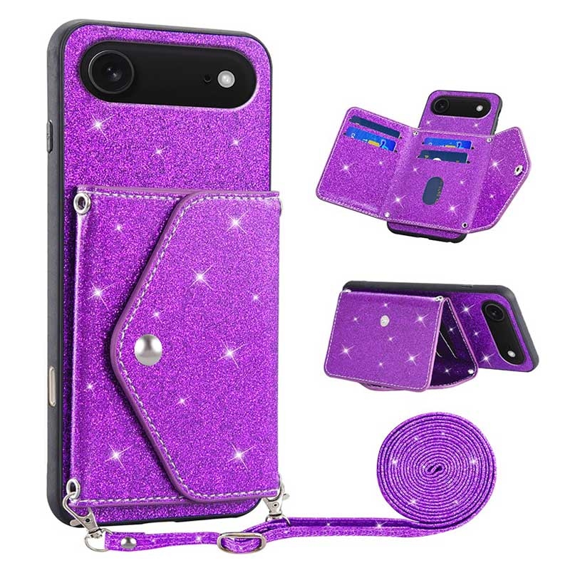 La coque de qualité supérieure de la série Stardust est le bon choix pour protéger votre iPhone Air de tout dommage potentiel. Il a un porte-cartes à l'arrière avec un bouton pression qui est idéal pour ranger vos cartes essentielles et les garder en sécurité. Une surface scintillante brillante ajoute une touche de glamour à votre téléphone. De plus, la coque est livrée avec une bandoulière de 150 cm, vous permettant de transporter votre iPhone Air partout où vous allez.