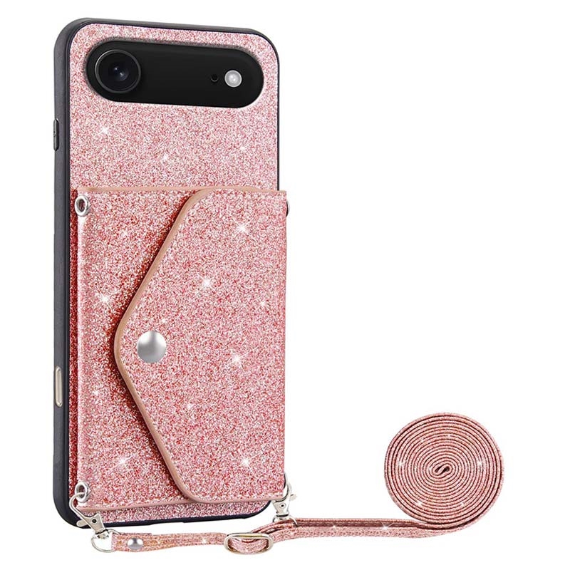La coque de qualité supérieure de la série Stardust est le bon choix pour protéger votre iPhone Air de tout dommage potentiel. Il a un porte-cartes à l'arrière avec un bouton pression qui est idéal pour ranger vos cartes essentielles et les garder en sécurité. Une surface scintillante brillante ajoute une touche de glamour à votre téléphone. De plus, la coque est livrée avec une bandoulière de 150 cm, vous permettant de transporter votre iPhone Air partout où vous allez.