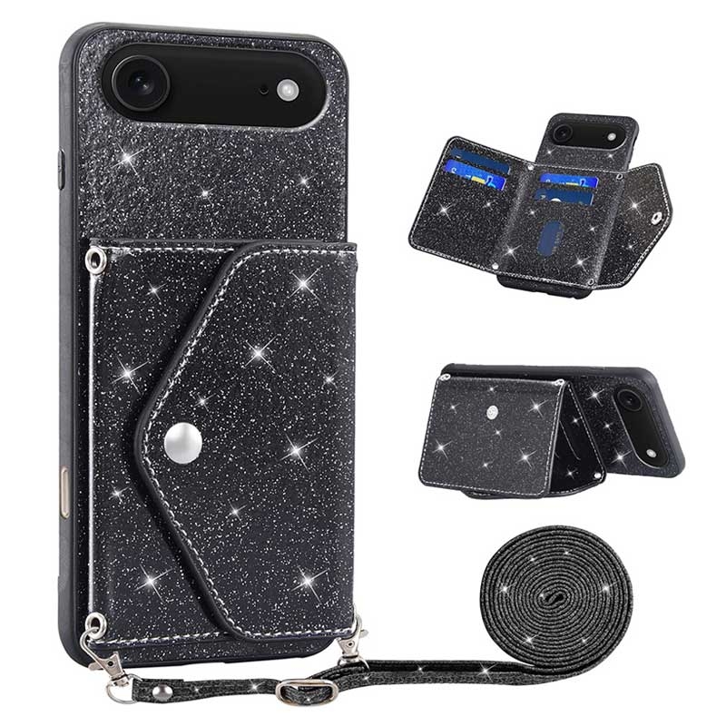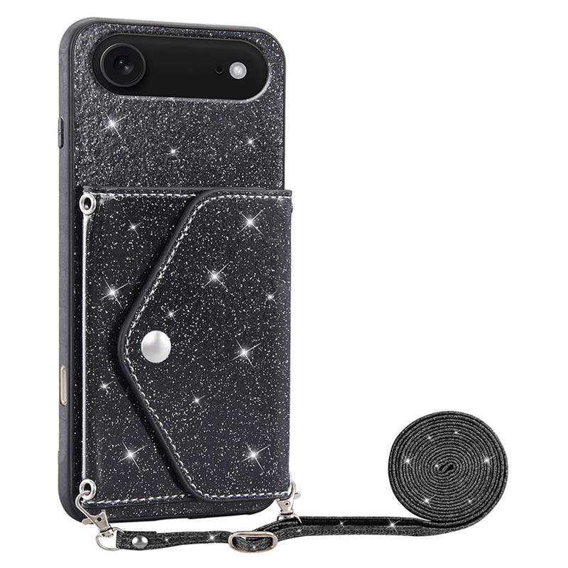 La coque de qualité supérieure de la série Stardust est le bon choix pour protéger votre iPhone Air de tout dommage potentiel. Il a un porte-cartes à l'arrière avec un bouton pression qui est idéal pour ranger vos cartes essentielles et les garder en sécurité. Une surface scintillante brillante ajoute une touche de glamour à votre téléphone. De plus, la coque est livrée avec une bandoulière de 150 cm, vous permettant de transporter votre iPhone Air partout où vous allez.