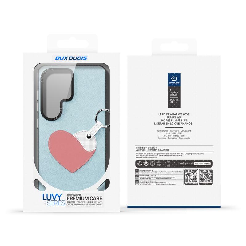 Coque Samsung Galaxy S26 Ultra Dux Ducis Luvy avec anneau de doigt/dragonne - Bleu ciel / Cœur