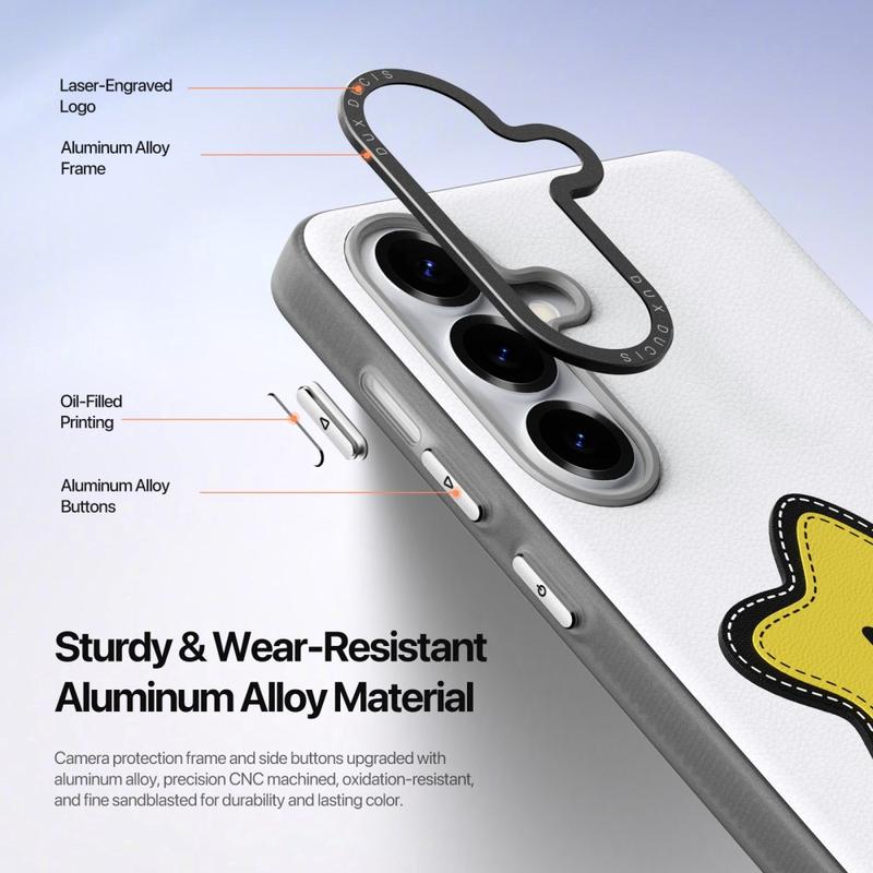 Le cadre de protection de l'appareil photo et les boutons latéraux sont fabriqués en alliage d'aluminium, usinés avec précision par commande numérique et finis par sablage fin. Cela garantit une couleur durable, une durabilité et une sensation de qualité supérieure, rehaussée par des détails subtils gravés au laser.