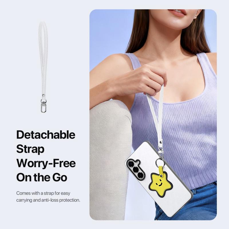 Une sangle amovible est incluse pour faciliter le transport lors des voyages, des déplacements ou des activités quotidiennes. Elle offre une sécurité supplémentaire contre la perte tout en donnant à votre Samsung Galaxy S26 une touche d'accessoire à la mode.