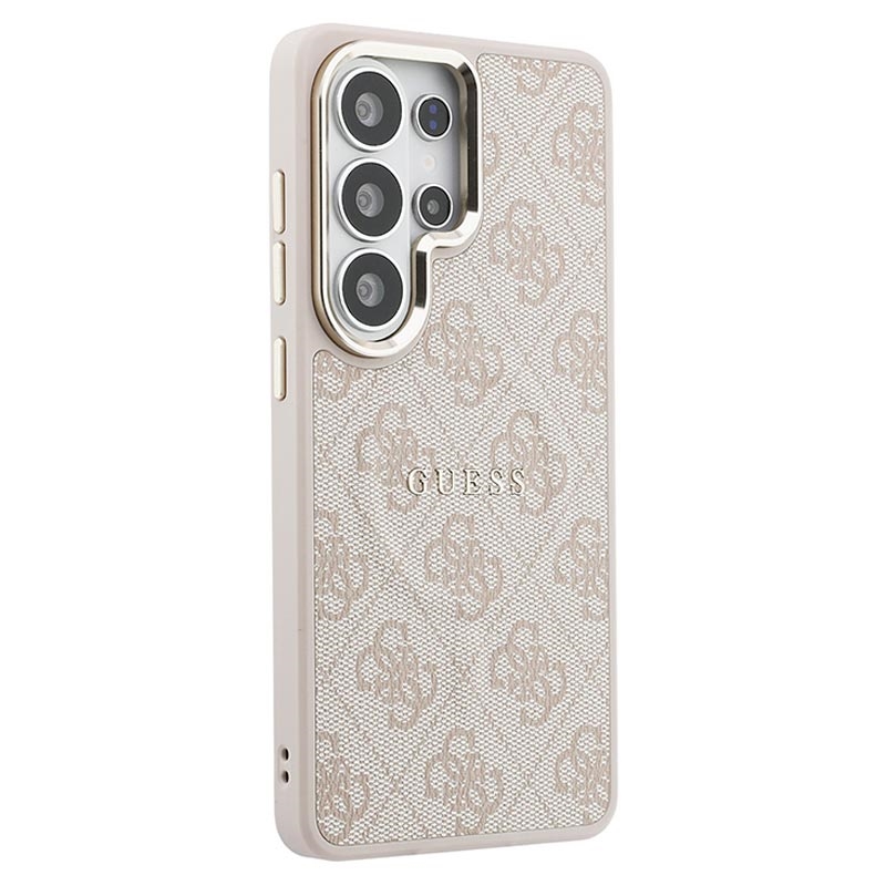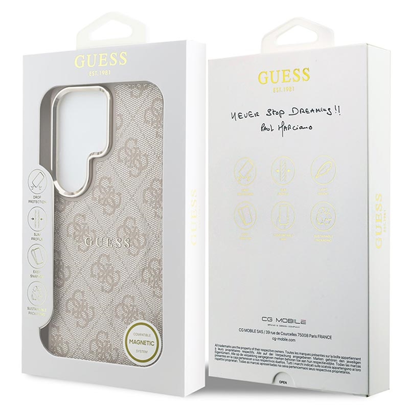 Coque MagSafe Guess 4G Gold Frame pour Samsung Galaxy S26 Ultra - Coque arrière protectrice fine, polyuréthane, compatible avec la recharge sans fil
