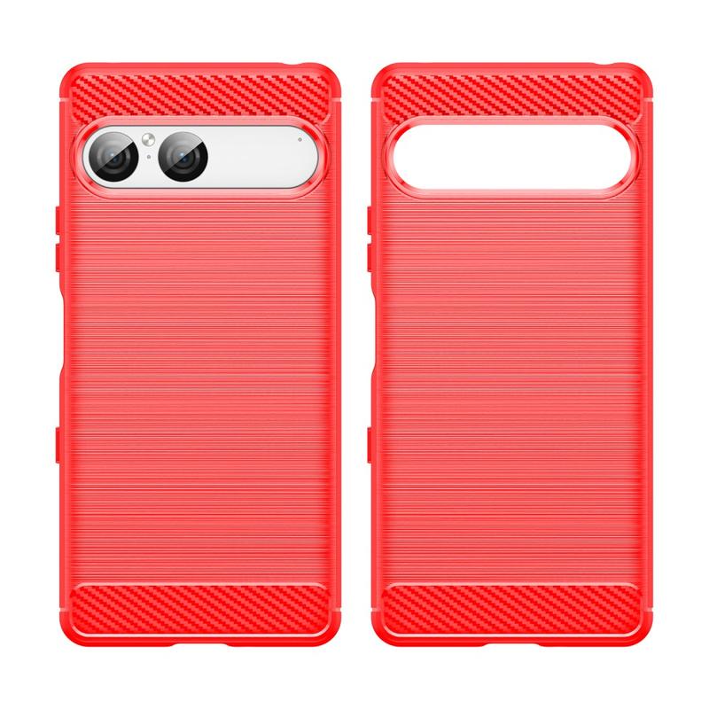 Coque Sony Xperia 10 VII en TPU Brossé - Fibre de Carbone - Rouge