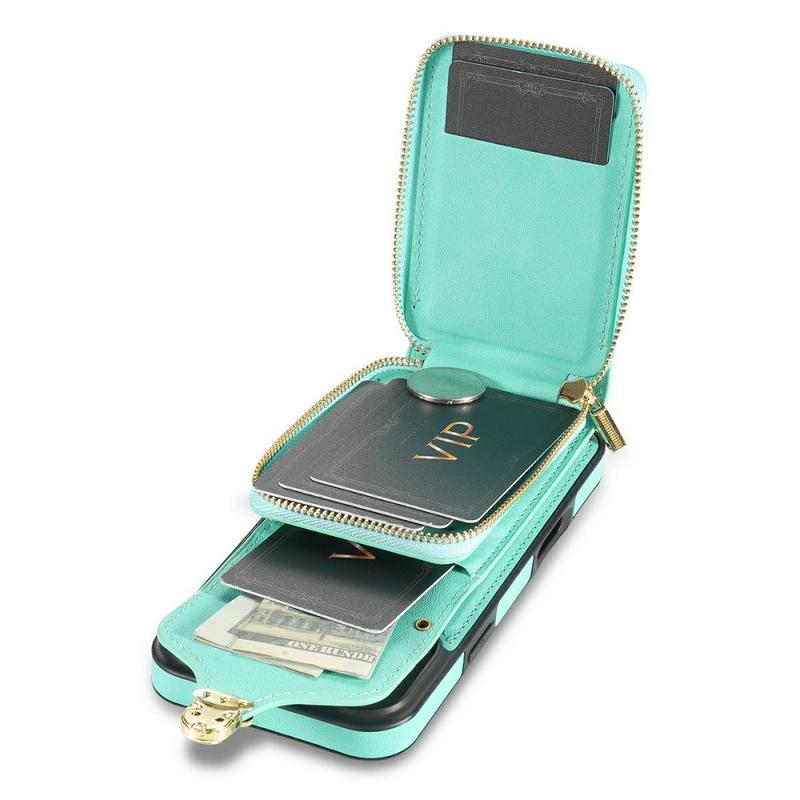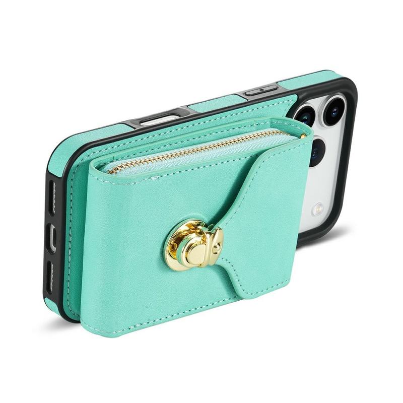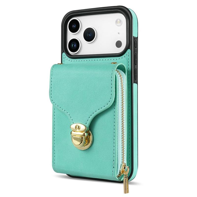 Coque tout-en-un iPhone 17 Pro Max avec portefeuille et dragonne - Menthe