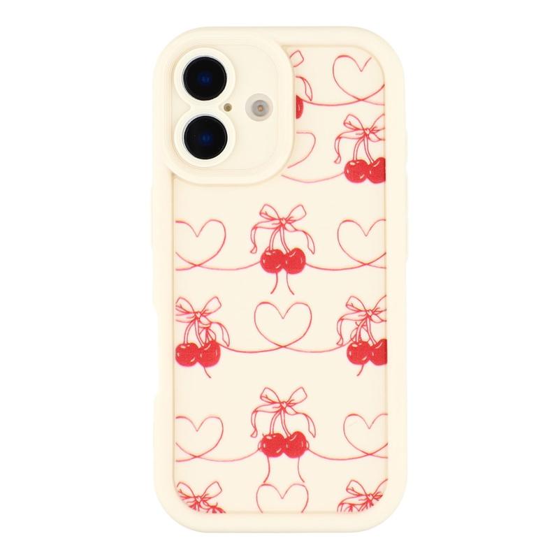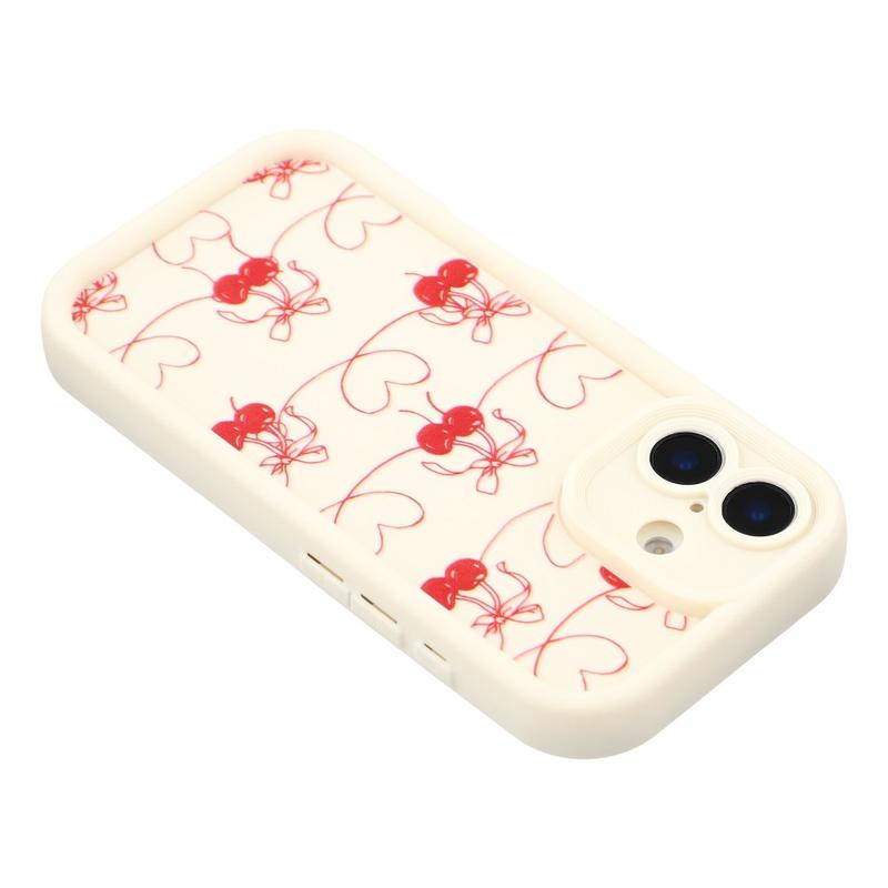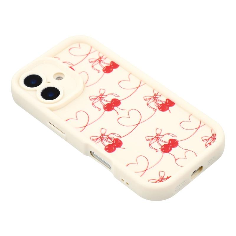 Coque TPU antichoc élégante iPhone 17 avec bords relevés - Blanche / Cerises à nœud
