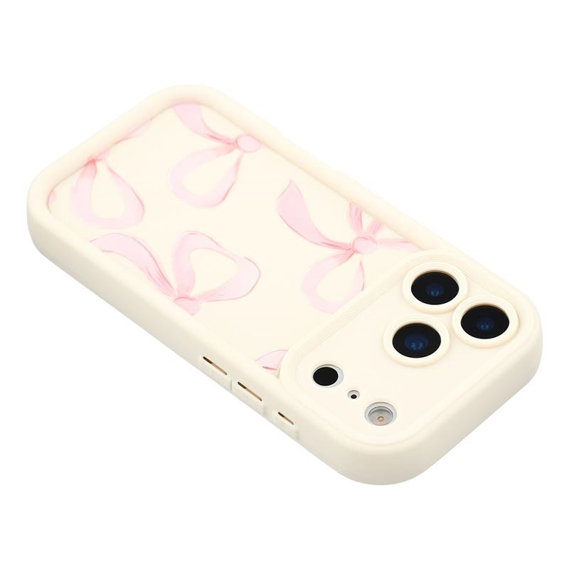 Coque TPU antichoc élégante iPhone 17 Pro avec bords relevés - Blanche / Gros nœud