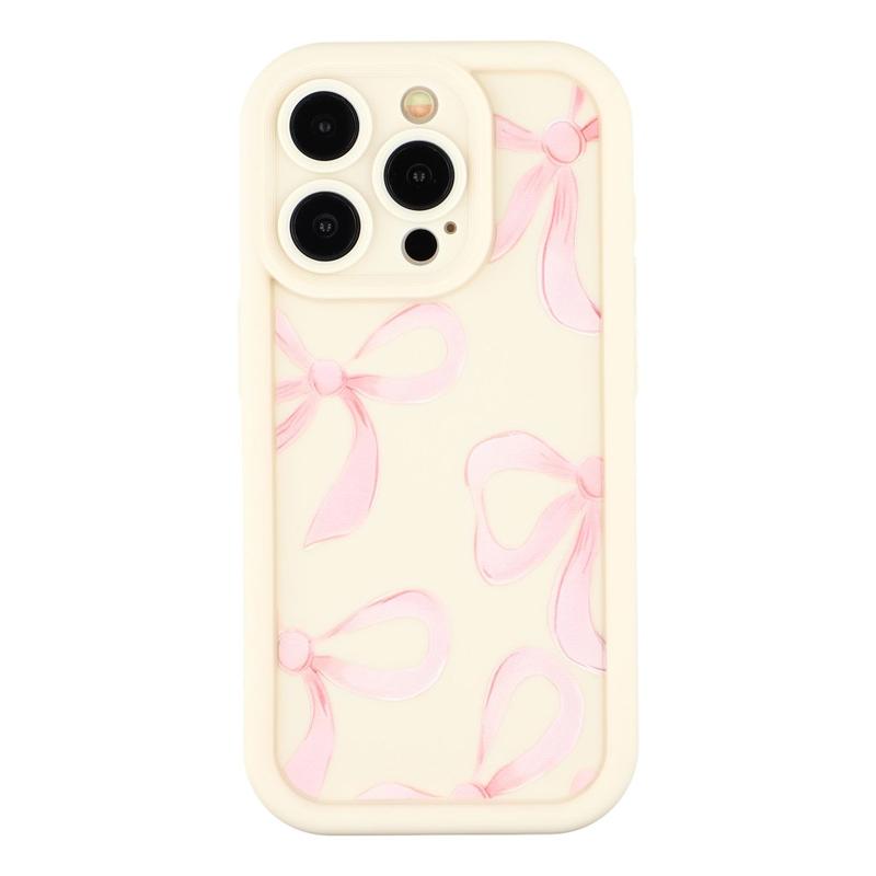 Coque TPU antichoc élégante iPhone 15 Pro avec bords relevés - Blanche / Gros nœud
