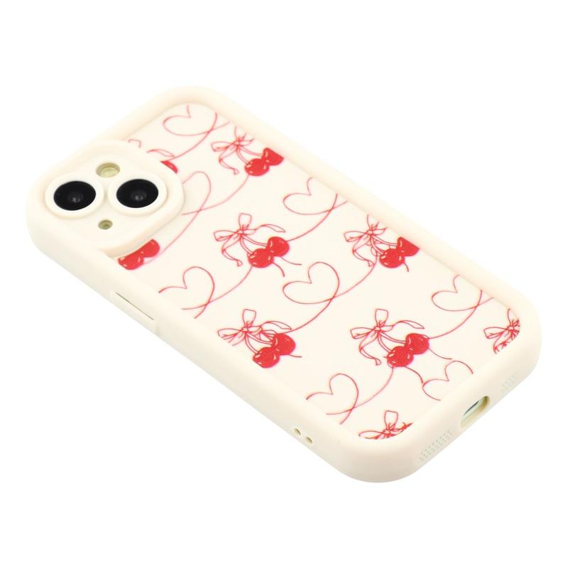 Coque TPU antichoc élégante iPhone 13 avec bords relevés - Blanche / Cerises à nœud