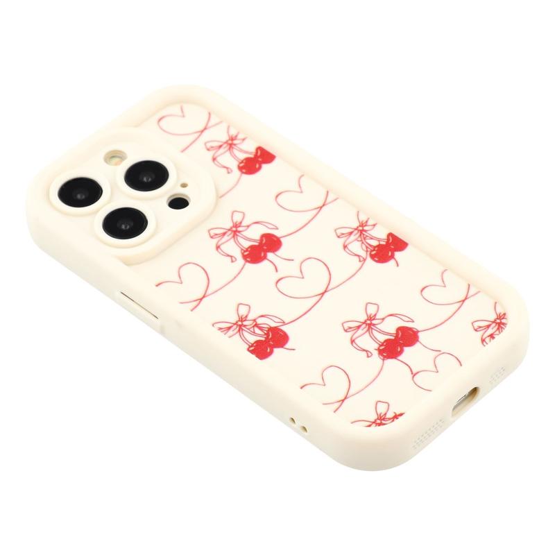 Coque TPU antichoc élégante iPhone 12 Pro Max avec bords relevés - Blanche / Cerises à nœud